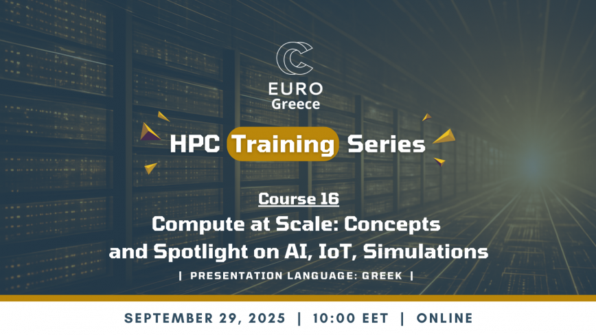 EuroCC@Greece announced the 16th Course of HPC Training Series with the subject “Compute at Scale: Concepts and Spotlight on AI, IoT, Simulations”, that took place online on September 29th, 2025.