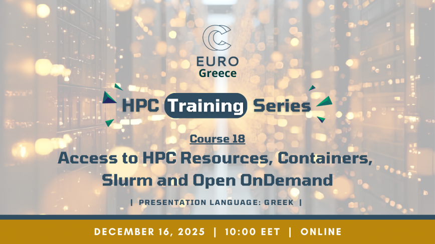EuroCC@Greece announced the 18th Course of HPC Training Series with the subject “Access to HPC Resources, Containers, Slurm and Open OnDemand”, that took place online on December 16th, 2025.